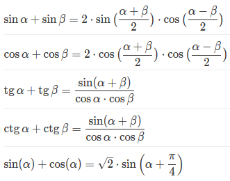 Op de pagina vindt u alle formules van trigonometrie in een handig ontwerp voor gebruik. Formules zijn gestructureerd in blokken volgens het aantal argumenten, bevoegdheden, rekenkundige bewerkingen erop.