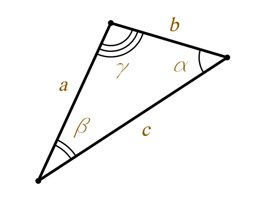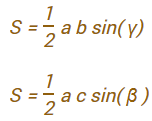 Het gebied van een driehoek langs twee zijden en de hoek ertussen, de formule. Als u de twee zijden van de driehoek en de hoek ertussen kent, wordt het gebied van deze driehoek berekend als de helft van het product van deze zijden vermenigvuldigd met de sinus van de hoek daartussen.